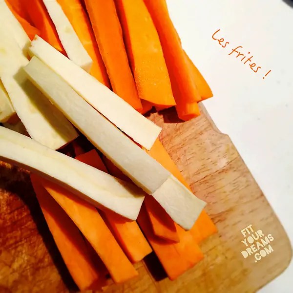 - Brossez vos légumes puis taillez-les en frites ni trop fines, ni trop épaisses, de tailles similaires.